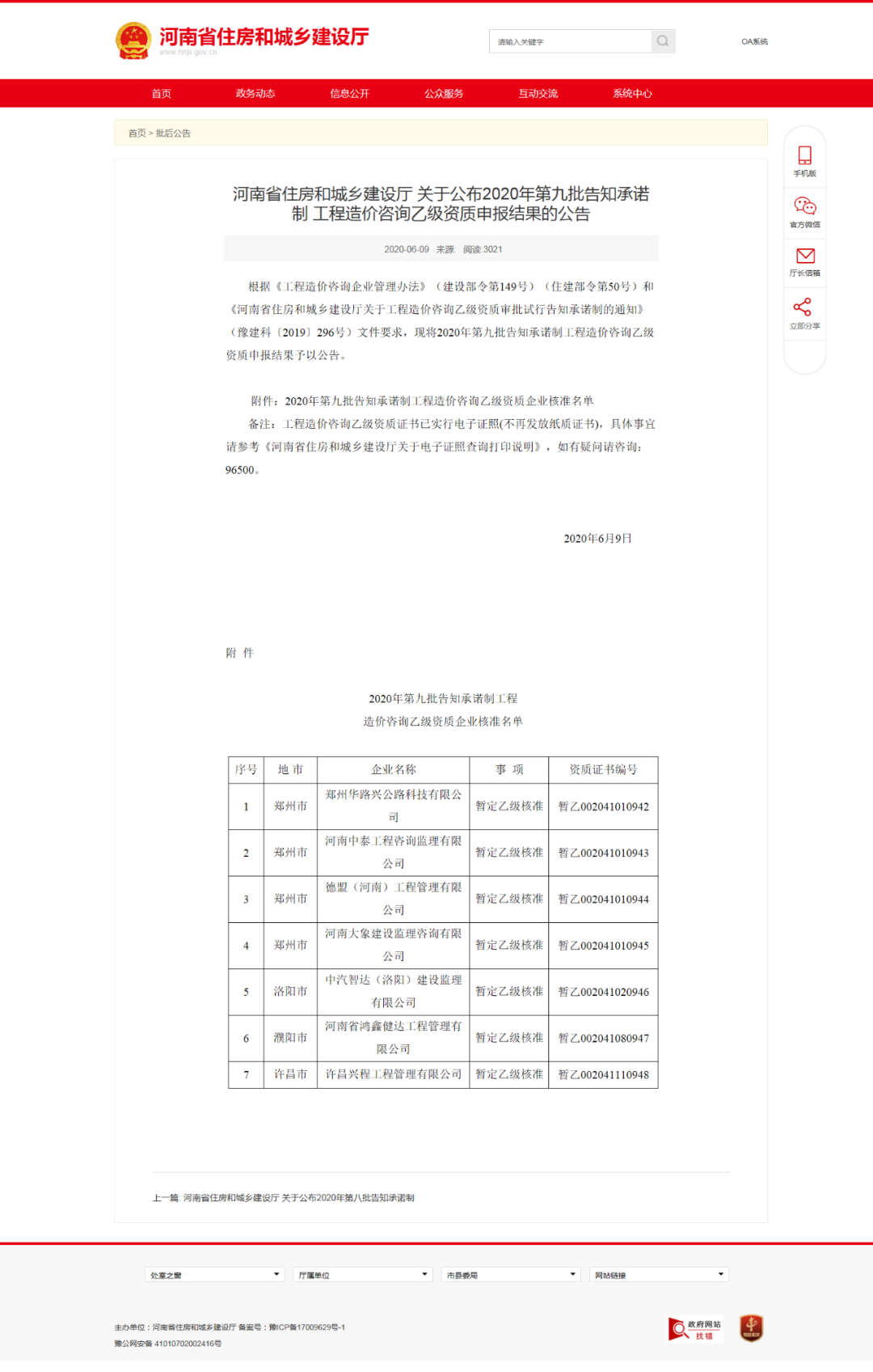 喜报:热烈祝贺我公司顺利取得工程造价咨询资质!